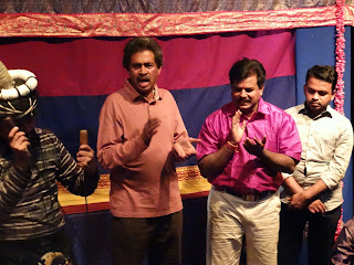 Another interesting moment was when a boy was invited to sit onstage with one of the puppets, who proceeded to hug him, rub his face with a cloth and present him with a flower garland.